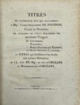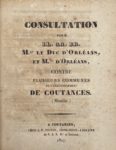 Ce volume réunit seize mémoires et documents imprimés à Saint-Lô, Coutances et Paris en 1827-1828, se rapportant tous aux revendications du duc d'Orléans et de sa sœur Adélaïde, héritiers de l'immense patrimoine du duc de Penthièvre, dans le Cotentin (domaines de l'arrondissement de Coutances, Valognes, Saint-Sauveur-Lendelin, procès contre les communes de Gavray, Portbail et Méautis, etc.), dont deux mémoires rédigés par le célèbre avocat Dupin.