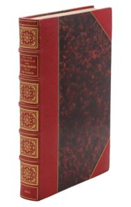 Paris, Henri Fournier, 1843. Grand in-8, demi-maroquin rouge avec coins, dos richement orné, tête dorée, non rogné, couverture et dos (V. Champs).Édition originale du texte de Paul-Émile Daurand-Forgues, dit Old Nick, et premier tirage de l'illustration, « une des plus spirituelles de Grandville » selon Carteret, composée d'un frontispice, d'un titre gravé, de 48 hors-texte et de plus de 150 vignettes dans le texte.