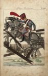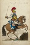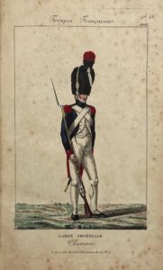 Paris, Martinet, s.d. [vers 1808]. In-8, demi-basane fauve avec coins, dos lisse muet (Reliure postérieure).Recueil de 43 planches gravées et coloriées à l'époque d'uniformes militaires, extraites de la série Troupes françaises, Premier Empire, publiée chez Martinet. Épreuves sur papier vélin, excepté deux planches imprimées sur papier vergé, plus courtes de marges. Légendes gravées et numérotation manuscrite.