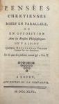 [DIDEROT (Denis)] — POLIER DE BOTTENS (Georges-Pierre). Pensées chrétiennes mises en parallèle, ou en opposition avec les Pensées philosophiques.
