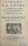 LAPIDE (Cornelius a) — Commentarius in Ecclesiasten, Canticum canticorum et Librum Sapientiæ.