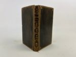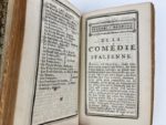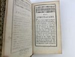 Collectif Etat actuel de la musique du roi et des trois spectacles de Paris. Paris, chez vente libraire, 1768. 1 volume in-12, reliure d'époque en plein maroquin vert, dos lisse avec titre et fleurons dorés, filets dorés en encadrement sur les plats accompagnés de fers dorés en écoinçon, toutes tranches dorées, gardes de papier dominoté. Petits manques en coins, coiffes arasées. Intérieur propre, joli page de titre en rouge avec cachet humide noir illisible.