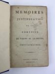 Valois-Saint-Rémy (comtesse de Valois de la Motte Jeanne de) Mémoires justificatifs de la comtesse Valois de la Motte écrits par elle-même. Londres, S.E., 1788. 1 volume in-8°, reliure à la Bradel fin XIXème en percaline bleue. Bon état. 232 pages contresignées à la plume par la comtesse elle-même au dernier feuillet. Sont reliées à la suite 46 pp. de pièces justificatives. Edition originale de ces fameuses mémoires, enrichie de la signature autographe de l'auteur (p.232). La comtesse de La Motte, connue pour son rôle dans l'Affaire du Collier qui lui value sa condamnation à perpétuité. Elle s'évade et s'enfuit à Londres, rejointe par son mari, elle publie ces mémoires, bourrées de mensonges, où elle prétend notamment avoir été une intime de Marie-Antoinette. Dans les pièces justificatives de seconde partie, elle prétend publier la correspondance entre la reine Marie-Antoinette et le cardinal de Rohan. Rare avec sa signature in-fine.