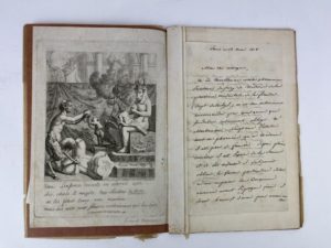 France Anatole - Vivant Denon Dominique Notice historique sur Vivant Denon par Anatole France. Paris, Rouquette et fils, 1890. 1 plaquette brochée in-8°, couverture rouge avec titre en noir. Exemplaire ne comportant pas de page de titre, la couverture sert de titre. Cette plaquette de XII pages est imprimée sur papier Japon et enrichie d'une lettre manuscrite sur 1 feuillet recto-verso datée de 19 mai 1818 et signé Denon. De plus, elle contient 3 gravures, un frontispice plus ancien que la plaquette représentant une scène avec des divinités égyptiennes avec 4 vers en légende, et un portait de Vivant Denon en deux états, l'un sur Chine, le second sur Japon. Quelques piqûres en marge du portrait sur papier de Chine. Rare plaquette avec une lettre originale de Vivant Denon.