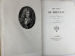 Boileau Nicolas - La Bruyère (Jean de) Œuvres. Collection des classiques françois. Paris, Didot et Lefèvre 1824. 6 volumes grand in-8°, reliure signée Capé. Demi-maroquin à coins, dos à nerfs très ornés de motifs dorés à petits fers perlés, titres et tomaisons dorés, têtes dorées. Exemplaire non rogné, quelques légers défauts et frottements d'usage. Impression sur vélin fort à toutes marges, papier très blanc, très peu de piqures sur l'ensemble des cahiers de texte. Série truffée et enrichie de nombreuses gravures venant d’autres éditions, documents, portraits, suites d'illustrations avant la lettre, etc. Certaines gravures ajoutées sont parfois roussies. Une table manuscrite au crayon indique les documents ajoutés. Il est fait mention de 147 pièces ajoutées. Série élégante et bien établie, remarquable impression de Jules Didot, imprimeur du roi. Soit 6 volumes, 4 pour Boileau et 2 pour La Bruyère. Ensemble complet.