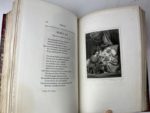 La Fontaine (Jean de) Œuvres. Collection des classiques françois. Paris, Didot et Lefèvre 1827. 8 volumes grand in-8°, reliure signée Capé. Demi-maroquin à coins, dos à nerfs très ornés de motifs dorés à petits fers perlés, titres et tomaisons dorés, têtes dorées. Exemplaire non rogné, quelques légers défauts et frottements d'usage. Impression sur vélin fort à toutes marges, papier très blanc, très peu de piqures sur l'ensemble des cahiers de texte. Série truffée et enrichie de nombreuses gravures venant d’autres éditions, documents, portraits, suites d'illustrations avant la lettre, etc. Certaines gravures ajoutées sont parfois roussies. Une table manuscrite au crayon indique le nombre de documents pour la série de La Fontaine s'élève à 498 documents ajoutés. Soit 7 volumes pour La Fontaine et un huitième volume intitulé : histoire de La Fontaine par Walcknaer. Série complète, élégante et bien établie, remarquable impression de Jules Didot, imprimeur du roi.