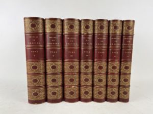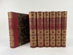 Racine Jean Œuvres. Collection des classiques françois. Paris, Didot et Lefèvre 1825. 7 volumes grand in-8°, reliure signée Capé. Demi-maroquin à coins, dos à nerfs très ornés de motifs dorés à petits fers perlés, titres et tomaisons dorés, têtes dorées. Exemplaire non rogné, quelques légers défauts et frottements d'usage, en particulier sur quelques nerfs. Impression sur vélin fort à toutes marges, papier très blanc, très peu de piqures sur l'ensemble des cahiers de texte. Série truffée et enrichie de nombreuses gravures venant d'autres éditions, documents, portraits, suites d'illustrations avant la lettre, etc. Certaines gravures ajoutées sont parfois roussies. Une table manuscrite au crayon indique les documents ajoutés. Série complète, élégante et bien établie ; remarquable impression de Jules Didot, imprimeur du roi.