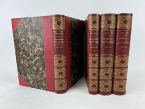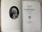 Rousseau Jean-Baptiste - Crébillon (Claude-Prosper Jolyot de) Œuvres. Collection des classiques françois. Paris, Didot et Lefèvre 1824/1828. 4 volumes grand in-8°, reliure signée Capé. Demi-maroquin à coins, dos à nerfs très ornés de motifs dorés à petits fers perlés, titres et tomaisons dorés, têtes dorées. Exemplaire non rogné, quelques légers défauts et frottements d'usage. Impression sur vélin fort à toutes marges, papier très blanc, très peu de piqures sur l'ensemble des cahiers de texte. Série truffée et enrichie de nombreuses gravures venant d’autres éditions, documents, portraits, suites d'illustrations avant la lettre, etc. Certaines gravures ajoutées sont parfois roussies. Une table manuscrite au crayon indique les documents ajoutés. Soit 2 volumes pour Rousseau et 2 pour Crébillon, ensemble complet. Série élégante et bien établie, remarquable impression de Jules Didot, imprimeur du roi. Soit 4 volumes.