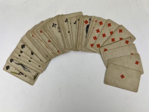1 jeu complet de 52 cartes érotiques du milieu du XIXème. Chaque carte mesure 8,5 x 5,5 cm, au …