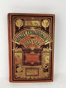 Verne Jules L'étoile du sud. Paris, Hetzel, S.D. (1895), catalogue CH. 1 volume grand in-8°, cartonnage éditeur en percaline rouge aux deux éléphants. Plaque de Souze, A. Lenègre relieur. Gardes bleues. Exemplaire correct, légers frottements d'usage, dos insolé, très rares piqûres, percaline en bon état, une coiffe et deux coins un peu mous, ors du premier plat corrects.