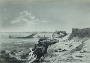 La tombe de Chateaubriand et en arrière-plan le Fort National. Dessin. Situé "Le Grand Bey près …