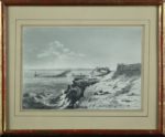 La tombe de Chateaubriand et en arrière-plan le Fort National. Dessin. Situé "Le Grand Bey près Saint Malo" et Signé "D. Le Gay" en bas à droite. 16,5 x 23,2 cm. Encadrement 27 x 32 cm.