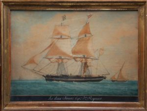 Antoine ROUX (1821-1887) Portrait du brick "Les deux Sœurs" sous voiles. Dans le Bandeau …