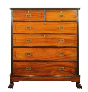 Commode de marine deux corps dite "commode deuil de NELSON" en camphrier et bordures en ébène. …