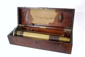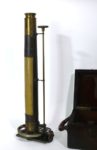 Micromètre de Lugeol, signée Dépôt de la Marine 157 - E. Lorieux à Paris" fin XIXe siècle. Coffret en acajou portant une plaque "DépOt de la Marine ..." Vendu en l'état. Note : Un micromètre de Lugeol est une lunette de visée comportant un objectif à deux demi-lentilles. permettant de mesurer la distance entre deux objets visés. Le corps porte des tables en degrés permettant de lire la mesure ... Instrument inventé par l’officier de la marine Jean Lugeol (1799-1866) dans les années 1860.