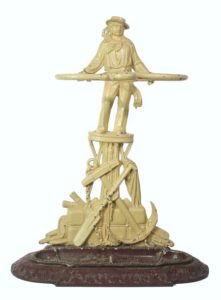 Porte-parapluie « au marin » en fonte. Peinture monochrome pour la partie haute. Fin XIXème siècle. Hauteur : 70,5 cm.