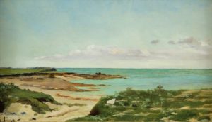 Gustave Edouard LE SENECHAL DE KERDREORET (1840-1920) Plage bretonne. Huile sur toile signée en …