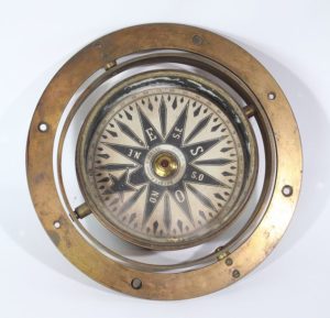 Compas cuve sèche en laiton. Suspension à la cardan sur large platine. L'étoile à 32 branches …