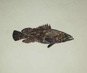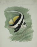Ensemble de huit aquarelles représentant chacune, un poisson exotique. Planche de 22,5 x 28 cm. …