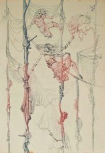 BELLMER Hans. HUGNET. Œillades ciselées en branches. Paris, Editions Jeanne Bucher, [1939]. In-16 broché, couverture rose recouverte d'une dentelle de papier blanc. Edition originale du premier livre illustré par Hans Bellmer. Tirage à 231 exemplaires. Un des 200 exemplaires sur Rives (n°126 justifié au crayon par Georges Hugnet). 25 compositions en couleurs de Bellmer selon la technique de l'héliogravure coloriées à la main sur plusieurs pages. Poèmes de Georges Hugnet également en héliogravure. La couverture porte un collage original de chromos de Georges Hugnet.