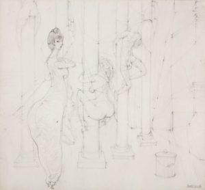 BELLMER Hans. Femmes aux colonnes. Dessin ORIGINAL au crayon double face signÉ. 16,5 x 18,5 cm, …