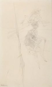 BELLMER Hans. JEUNE FILLE avec canne et béret. DESSIN ORIGINAL SIGNÉ. [1955]. 19 x 11 cm, sous encadrement. Dessin original au crayon sur papier signé au recto par Bellmer. Provenances : - Brook street gallery, Londres - Galerie d'Eendt, Amsterdam (étiquettes au verso), puis collection particulière