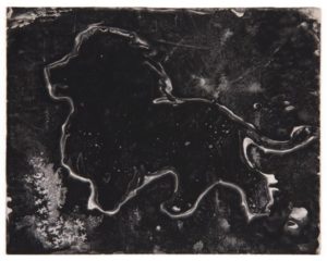 DOMINGUEZ Oscar. DÉCALCOMANIE ORIGINALE. Paris, 1936. 20 x 25 cm, sous passe-partout. Monotype original d'Oscar Dominguez figurant un lion réalisé chez Marcel Jean pour illustrer l'album Grisou annoncé en 1937 par GLM et qui ne paraitra qu'en 1990 aux éditions JLM. Etiquette de Marcel Jean au verso : montage original d'Oscar Dominguez exécuté chez moi à Paris en 1936 Marcel Jean.