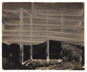 DOMINGUEZ Oscar. DÉCALCOMANIE ORIGINALE. Paris, 1936. 20 x 25 cm, sous passe-partout. Décalcomanie originale d'Oscar Dominguez réalisée chez Marcel Jean pour illustrer l'album Grisou annoncé en 1937 par GLM.