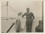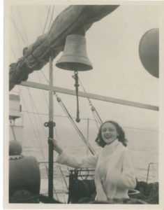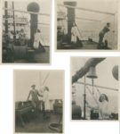 [ELUARD Nusch]. NUSCH ELUARD, RENÉ CHAR ET PAUL ELUARD. 6 PHOTOGRAPHIES ORIGINALES. [1930]. 10,3 x 8,2 cm. Six tirages argentiques d'époque sur papier Agfa Lupex représentant sur le bateau Le Catalan, Nusch, Paul Eluard et René Char, voguant vers Cadaquès. 4 photographies vraisemblablement prises par Eluard représentent René Char et Nusch, les deux autres Nusch seule près de la cloche du navire et Paul Eluard et Nusch probablement prises par René Char. Une photographie est reproduite page 137 de l'Album Pléiade.