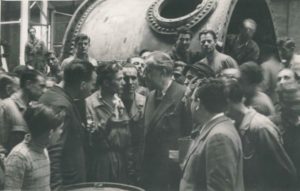 [ELUARD Paul]. PAUL ELUARD. 5 PHOTOGRAPHIES ORIGINALES. Circa 1946. Cinq tirages argentiques d'époque représentant Paul Eluard : - Paul Eluard assis seul cigarette à la main. 9,5 x 6,5 cm - Paul Eluard au lycée de Biarritz, 27 mars 46. 13,5 x 9 cm - Paul Eluard au lycée de Biarritz, 27 mars 46. 8,7 x 13,2 cm - Paul Eluard parlant aux ouvriers aux usines Fiat à Turin en 1946. 10,2 x 16,7 cm - Paul Eluard aux usines Fiat à Turin en 1946. 10,2 x 16,7 cm, reproduite dans la Pléiade, page 262.