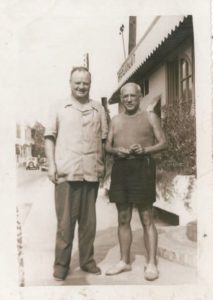[PICASSO Pablo]. PICASSO ET MAURICE THOREZ. PHOTOGRAPHIE ORIGINALE SIGNÉE PAR PICASSO. Carpentras, circa 1950. 16 x 11 cm (pliure à un angle). Tirage argentique d'époque représentant côte à côte Picasso et Maurice Thorez célèbre secrétaire général du parti communiste français. Signature autographe au stylo à bille au verso par Picasso et tampon de la section Vallauris du Parti communiste français.