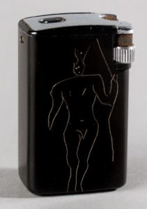 PICASSO Pablo. FAUNE. BRIQUET AVEC DESSIN SIGNÉ DE PICASSO GRAVÉ À LA POINTE. 1961. 6 x 3,5 cm. Briquet de la marque Flaminaire émaillé noir. Sur une face figure un faune gravé à la pointe par Picasso, sur l'autre face signature et dédicace gravées également à la pointe : Pour Marguerite, 1.11.61 Picasso. Provenance : - Vente Oger-Dumont Palais Galliera, 4 mars 1972, n°86. Un certificat du comité Picasso en date du 17/10/2024 sera remis à l'acquéreur, le briquet est enregistré sous la référence 0188.