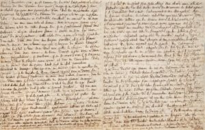 SADE (Marquis de). LETTRE AUTOGRAPHE SIGNÉE À SA FEMME Renée PÉlagie de Montreuil. [Prison du donjon de Vincennes. Octobre 1781]. 4 pages in-8 à l'encre d'une écriture serrée. Lettre extraordinaire et étonnante signée de Sade à sa femme René Pélagie de Montreuil de qui il exige la plus exemplaire vertu. Cette année 1781 ont lieu les premières entrevues de Madame de Sade avec son mari après plus de 4 ans de séparation. Sade lui fait une scène de jalousie, celle-ci ne fera qu'empirer. Comme la dernière fois je ne descends pas ce sera une grande question quand on viendra me chercher est-elle encore habillée comme la dernière fois, à l'affirmative je ne descends pas, à la négative peut-être on me trompera... la robe blanche et la coiffure en cheveux entrevues je remonte à l'instant je le jure sur mon dieu et sur mon honneur... que signifie cette excuse si tu voyais les autres, les autres n'ont pas leur mari en prison et si elles l'ont et qu'elles agissent ainsi... ne méritent que des insultes et des mépris. Dites-moi iriez-vous faire vos Pâques dans cet accoutrement de baladine ou de marchande... non n'est-ce pas et bien le recueillement doit être le même... si vous êtes honnête ce n'est qu'à moi que vous devez plaire et vous ne me plairez sûrement jamais que par l'air et le fait de la plus grande décence. J'exige en un mot si vous m'aimez j'exige donc dis-je que vous veniez en robe que vous appelez vous autres femmes robe de chantre en grand et très grand bonnet... et point de tresse et la gorge extraordinairement couverte et non indécemment débraillée comme l'autre jour. Ma chère amie souvenez-vous en le désespoir des femmes qui ont méprisé la vertu et le respect que lui rendent celles qui l'ont constamment honorée... conserve la cette vertu c'est elle qui me fait rougir de mes écarts, c'est elle seule qui me les fait détester. L'homme sensible est de ressembler à ce qu'il aime, ça vient qu'à l'exemple des vices que j'ai toujours, dit mes malheurs, si l'amour de la vie l'emporte sur le courage de me donner la mort. L'inconstance ou l'instabilité vacille de amant ou de mari dit-on mais n'imagine jamais que la mienne soit de cette trempe-là, je ne pardonnerai jamais un outrage. O grand dieu qu'on entrouve jamais ma prison que je meure plutôt que d'en sortir pour apercevoir mon infamie, la tienne et celle des montres qui te conseillent... Extraordinaire document.