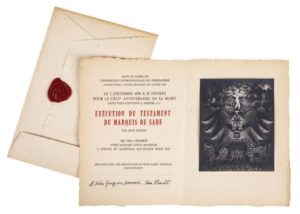 [SADE Marquis de] EHRMANN Gilles. JEAN BENOIT ET L'EXÉCUTION DU TESTAMENT DU MARQUIS DE SADE. …