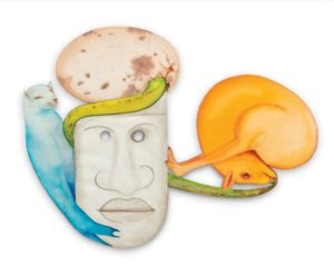 SILBERMANN Jean-Claude. DÉCOUPAGE ORIGINAL SIGNÉ. 1978. 45 x 62 cm, sous encadrement (73 x 90 cm). Découpage original, technique mixte, collage et aquarelle. Titré, daté et signé au verso par l'artiste : Projet de masque pour Tête de Nègre, Silbermann, 1978.