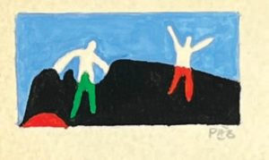 QUIMINAL Michel. LUTTE. PAB. 1951. 5,5 x 7 cm. Chemise-étui de papier fort. Edition originale tirée à 21 exemplaires signés par l'auteur. Gouache originale signée de PAB.