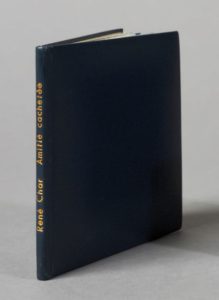 CHAR René. AMITIÉ CACHETÉE. PAB, 1952. 9 x 7,5 cm, plein box bleu nuit, dos titré or, …