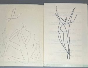 MOUGIN Jules. LE PETIT GARS NETTOYAIT LES CHAPEAUX. PAB, 1952. 12 x 15,4 cm, en feuilles. Edition originale tirée à 50 exemplaires sur Johannot. LOIZE Jean. JEU SANS RIME. PAB, 1952. 5 x 7,5 cm, broché (pli à la couverture). Edition originale tirée à 47 exemplaires signés par PAB. TULIPE Jacques. LE FIANCÉ VENU. PAB, 1952. In-8. Edition originale comportant 2 illustrations de Jacques Delpeyron. Tirage à 30 exemplaires numérotés. [ANONYME]. LE CHAT. PAB, 1952. 7,8 x 7 cm, broché. Edition originale de ce texte rédigé par un écolier de neuf ans. Tirée à 52 exemplaires sur papier quadrillé.