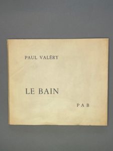 VALERY Paul. LE BAIN. PAB, 1953. 13,5 x 16 cm. Edition originale illustrée de 2 lithographies de Pierre-André Benoit. Un des 50 exemplaires sur papier bleu d'Auvergne signés par l'éditeur.