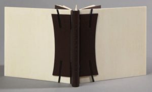 [Giacometti]. Dupin Jacques. Giacometti Alberto. ART POÉTIQUE. PAB, 1956. 8,5 x 8,5 cm, dos de polyvinyle chocolat, plats articulés de bois teinté portant une pièce géométrique de polyvinyle chocolat fixé par deux barrettes noires, monté sur onglets, gardes de box chocolat, chemise titrée à l'oeser, étui (Philippe Fié). Edition originale comportant en frontispice une illustration d'Alberto Giacometti. Tirage à 60 exemplaires signés par Pierre-André Benoit.