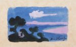 [HUGO Jean]. BENOIT Pierre-André. JEAN HUGO PEINT. PAB, 1956. 5,5 x 9 cm, pleine peau bleu ciel à nervures et constellations de points dorés, dos titré or, couvertures et dos conservés, chemise, étui (Hélène Limousin). Edition originale comportant 2 illustrations de Jean Hugo contrecollées. Un des 6 premiers exemplaires sur auvergne signés par Pierre-André Benoit comportant une gouache signée de Jean Hugo et un dessin original à l'encre également signé de Jean Hugo, contrecollés dans l'exemplaire. HUGO Jean. BENOIT Pierre-André. NE CHANTER. PAB, 1955. 17,5 x 11,7 cm (légères rousseurs) Edition originale, illustration en frontispice de Jean Hugo. Tirage à 99 exemplaires sur Rives signés par l'éditeur.