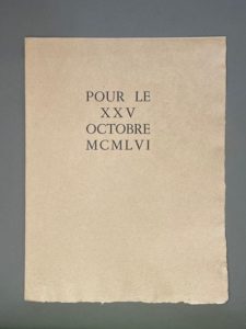 BENOIT Pierre-André. Pour le xxv octobre mcmlvi. PAB, 1956. Deux feuillets, 25,5 x 19,5 cm. …