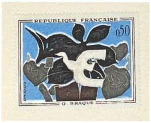 BRAQUE Georges. BENOIT Pierre-André. PARTOUT LÀ. PAB, 1961. Edition originale tirée à quelques exemplaires illustré d'un timbre postal de Braque contrecollé dans l'exemplaire. L'on joint 2 timbres identiques de Braque dont l'un oblitéré. [BRAQUE Georges]. BENOIT Pierre-André. LES LIVRES DE BRAQUE RÉALISÉS PAR BRAQUE. PAB, 1961. 25,5 x 16,5 cm. Edition originale.