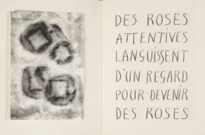 BENOIT Pierre-André. ATTENDANTES. PAB, 1962. Grand in-8, pleine reliure de daim souple bordeaux, fenêtre pour le titre à froid sur le premier plat, étui. Edition originale entièrement manuscrite et illustrée par Pierre-André Benoit. Tirage unique à 4 exemplaires sur Arches numérotés et signés par Pierre-André Benoit, celui-ci dédicacé à Jean Parizel. BENOIT Pierre-André. À L'INSTANT REVÉCU. PAB, 1962. 21,2 x 16,4 cm, en feuilles. Edition originale illustrée de 3 gravures sur linoleum de Odette Ducarre. Tirage à 50 exemplaires sur Rives signés par PAB et Odette Ducarre.