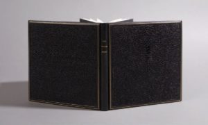 [BENOIT Pierre-André]. POUR MADAME BENOIT. PAB, 1971. Petit in-8 carré, Bradel dos de maroquin noir titré or, les deux plats de galuchat noir, couvertures et dos conservés, chemise et étui (Patrice Goy). Edition originale tirée à 72 exemplaires. Poèmes de René Char, Raoul Ubac, Pierre-André Benoit. Photo de Jacques Daniel, dessins de Jean Hugo et Georges Braque.