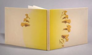 FRÉNAUD André. UBAC Raoul. CONSTRUIRE EN MARGUERITE. 1981. In-12, oblong, Bradel pleine peau teintée, décor géométrique contrecollé en relief sur les deux plats, chemise titrée, étui (Monique Mathieu). Edition originale de poèmes inédits d'André Frénaud manuscrits 26 fois par André Frénaud sur papier du Népal et ornés d'une empreinte par Raoul Ubac. Exemplaire signé par André Frénaud et Raoul Ubac. Relié par Monique Mathieu à l'occasion de son exposition à la galerie Giraud-Badin.