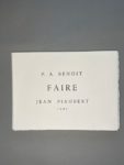[PIAUBERT Jean]. BENOIT Pierre-André. FAIRE. PAB, 1991. 12,5 x 16,5 cm Edition originale, …