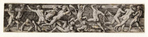 Barthel BEHAM, Raptus Helenae. — 1520-1540 ca. — Bulino. — mm 24x115.