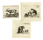 Al verso marchio di collezione a penna di Charles Lenormand du Coudray (Lugt, 1704-1706). / Id., Dieci tavole da Diversi animali. Acquaforte. mm 83/87x105/110.Foglio : mm 105/130x138/145. Frontespizio e tavole nn, 3,5,7,8,9,11,12,16,20. Buone impressioni su carta vergellata. (12)