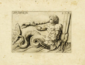 Giovanni Battista GALESTRUZZI, Quindici tavole da Tritoni e mostri marini. — 1650 ca. — Acquaforte. — mm 85x124. — Foglio; mm 147/150x196/200.